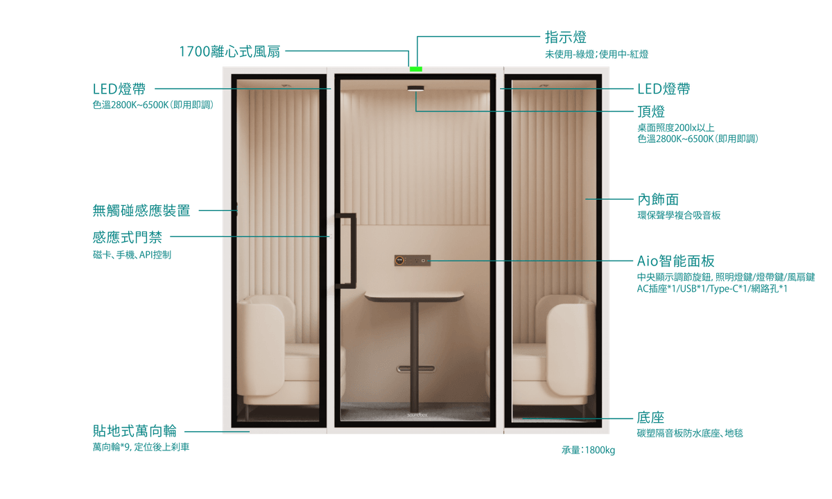 · 頂燈:桌面照度 200 lx 以上,色溫2800K~6500K(即用即調)