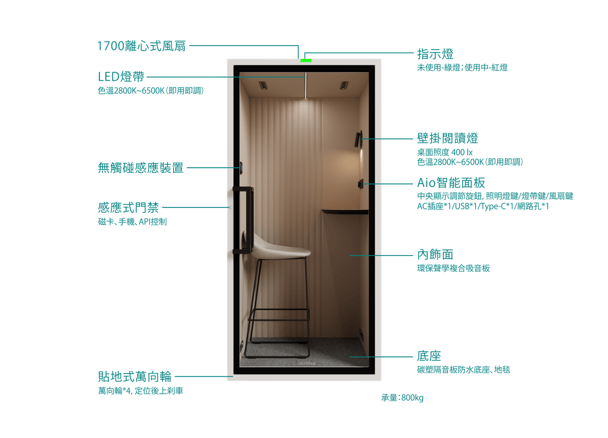 · 壁掛閱讀燈:桌面照度 400 lx,色溫2800K~6500K(即用即調)